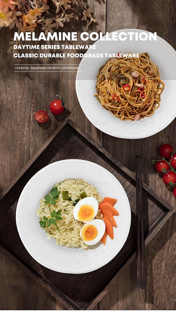 MN069 High quality white color restaurant hotel club bar banquet party wedding prefered daytime Melamine round plate