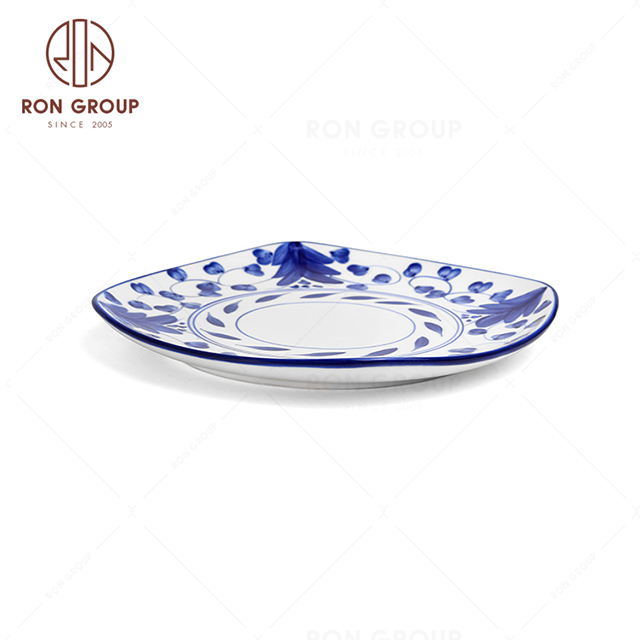 RonGroup New Color Rattan Flower Chip Proof Porcelain Collection - Ceramic Dinnerware Shallow Square Plate