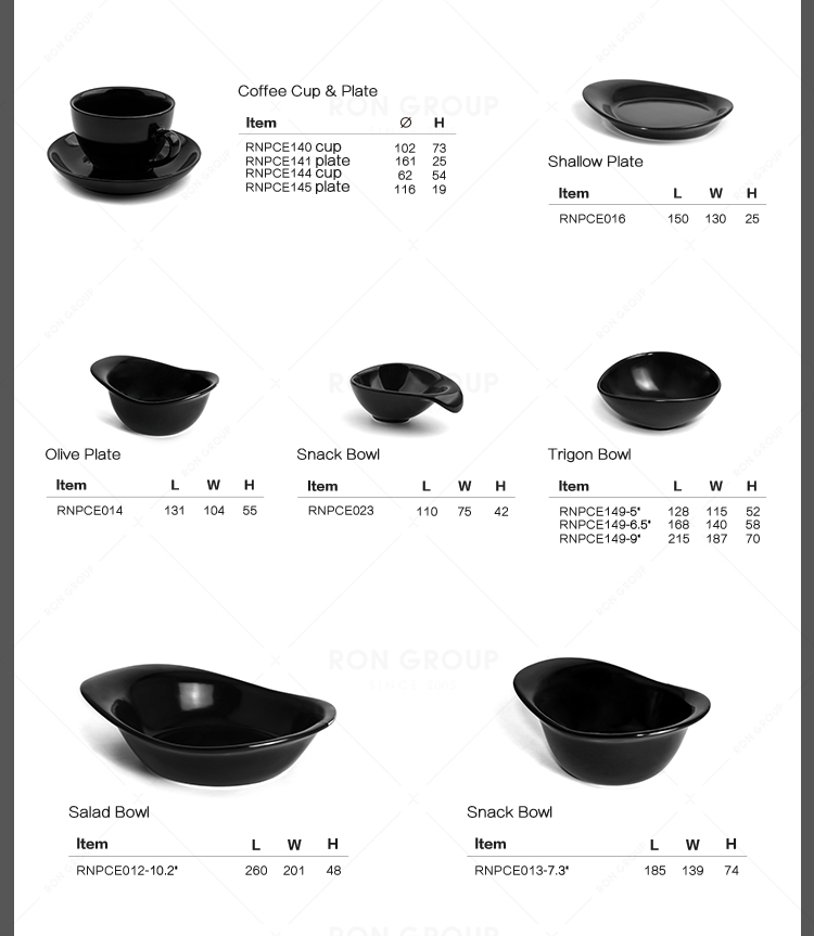 RNPCE149-Factory Wholesale Matte Black Style Restaurant Hotel Bar Cafe Wedding Trigon Bowl